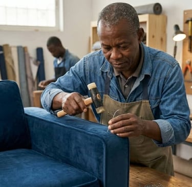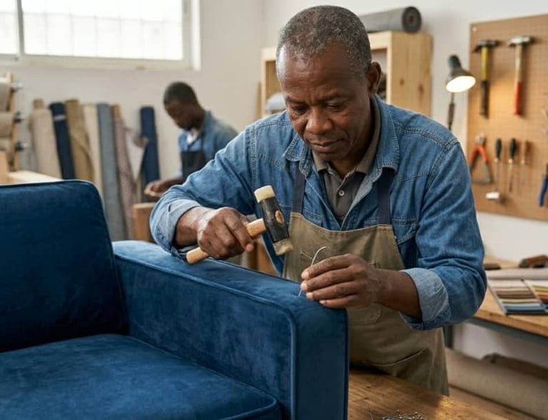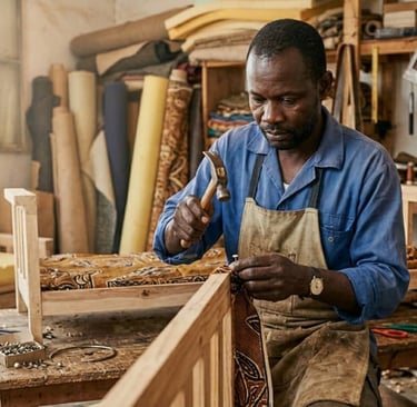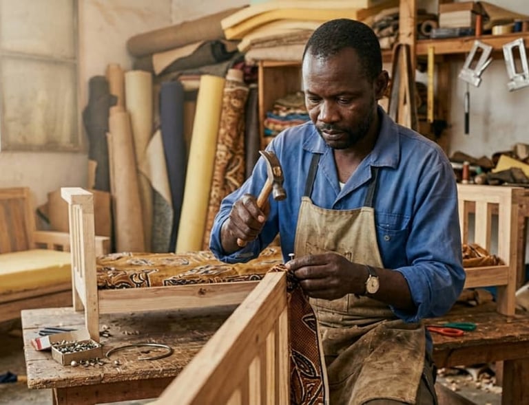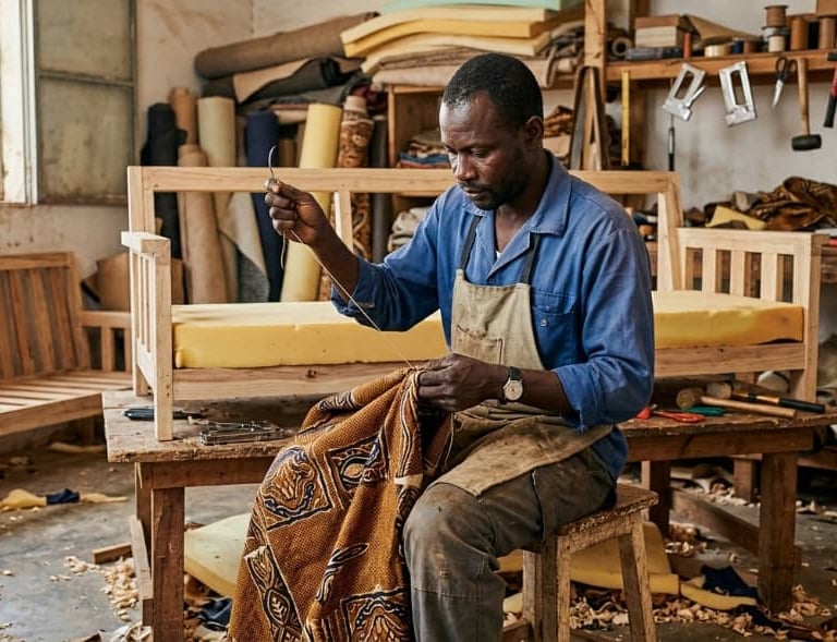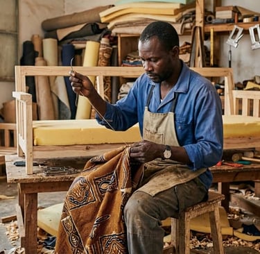 Chaque meuble est façonné avec soin par des artisans dakarais passionnés, alliant tradition et modernité pour votre salon.